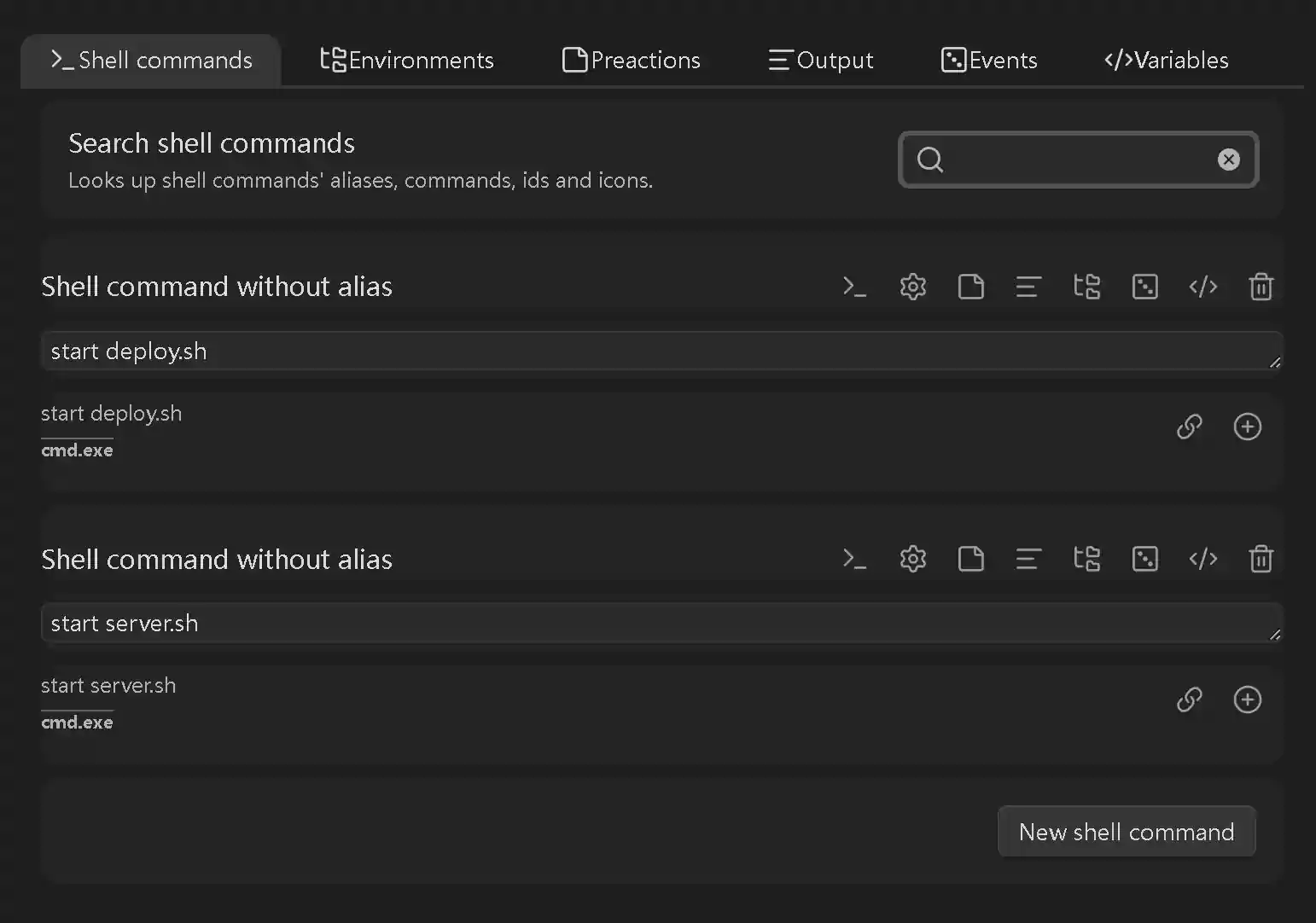 选择New shell command,添加start deploy.sh和start server.sh