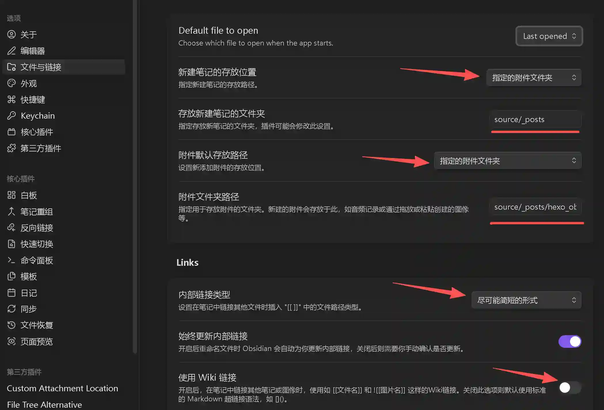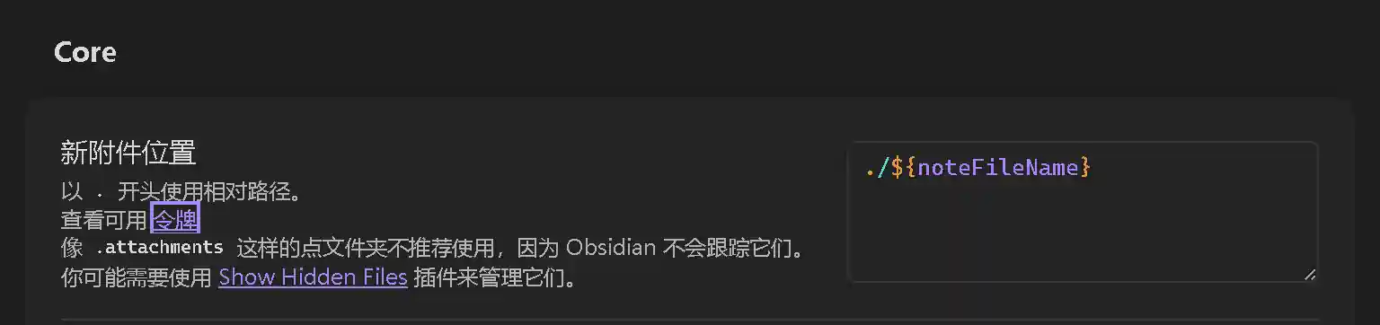 附件文件夹路径不用填,由Custom Attachment Location插件自动生成。